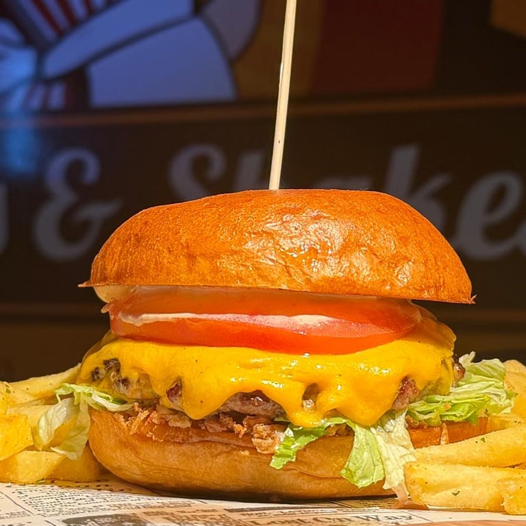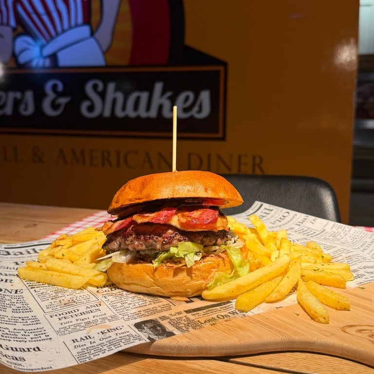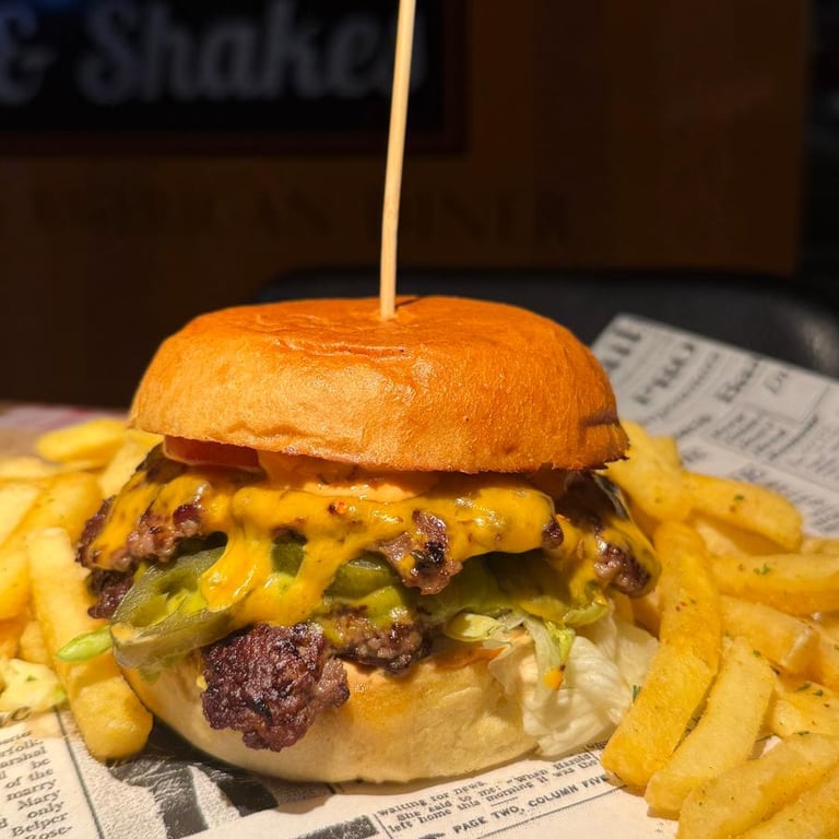 Ob klassischer Cheeseburger, knuspriger Smashburger oder cremiger Milkshake – bei uns dreht sich alles um Qualität, Geschmack und echte Leidenschaft. Unsere Zutaten werden sorgfältig ausgewählt, unsere Rezepte sind vom authentischen Diner-Feeling inspiriert – nur besser, weil sie hier frisch für dich entstehen.